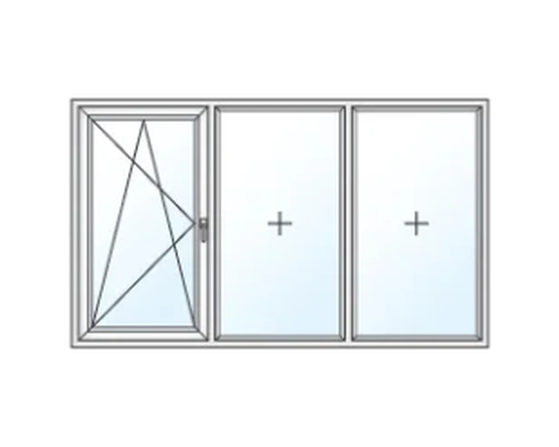 Trīsdaļīgs logs ar 1 vērtni veramo/ atgāžamo 1900x1200